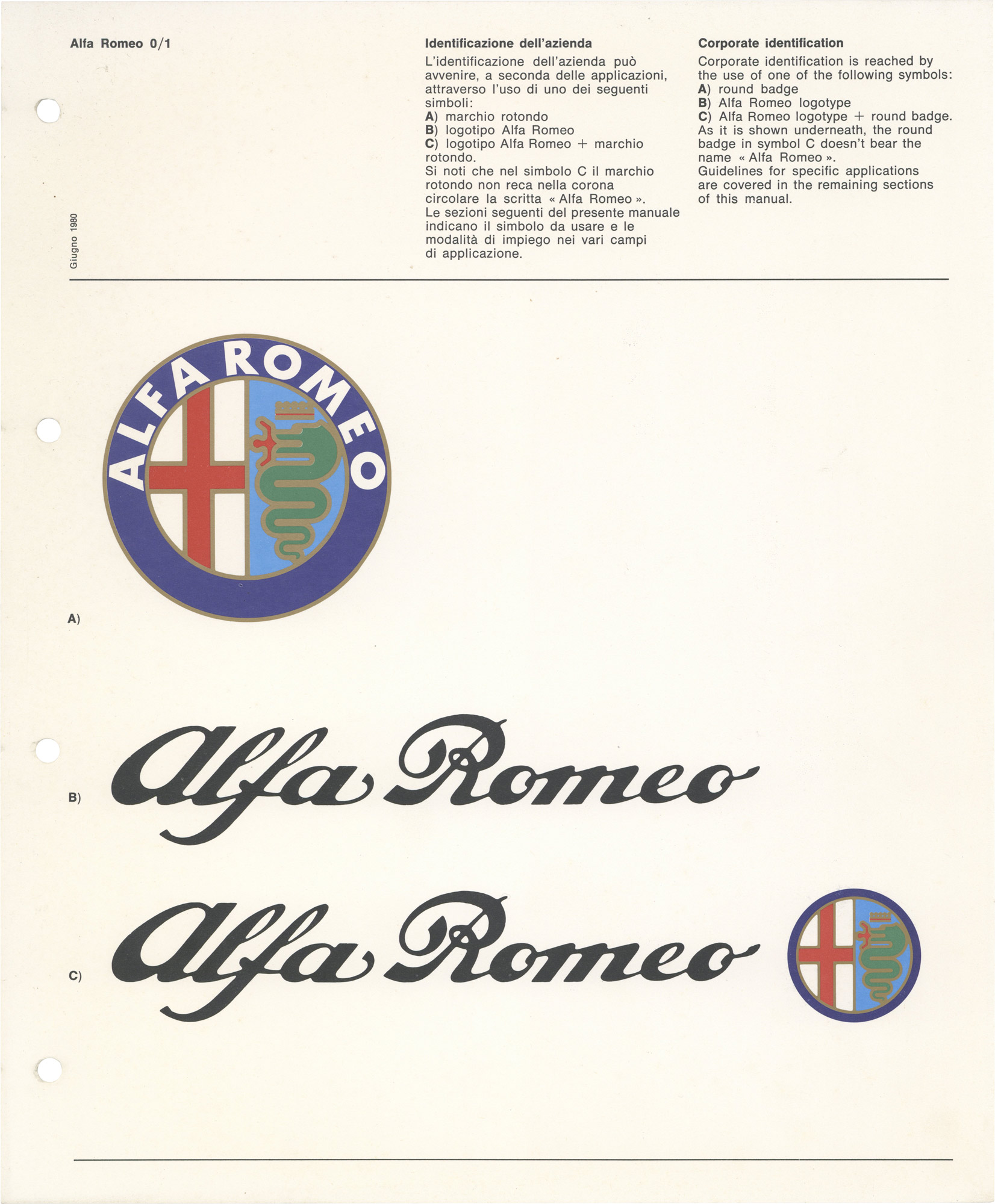 Galerie VergrößernVollbildanzeige beendenAlfa Romeo. Manuale della firma Alfa Romeo nelle comunicazioni visiveJahr: 1980Medium: Design manualMaße: 25 x 30 cmTechnik: Paper ring binder, OffsetAuftraggeber: Alfa RomeoOrt: TurinKeine Beschreibung