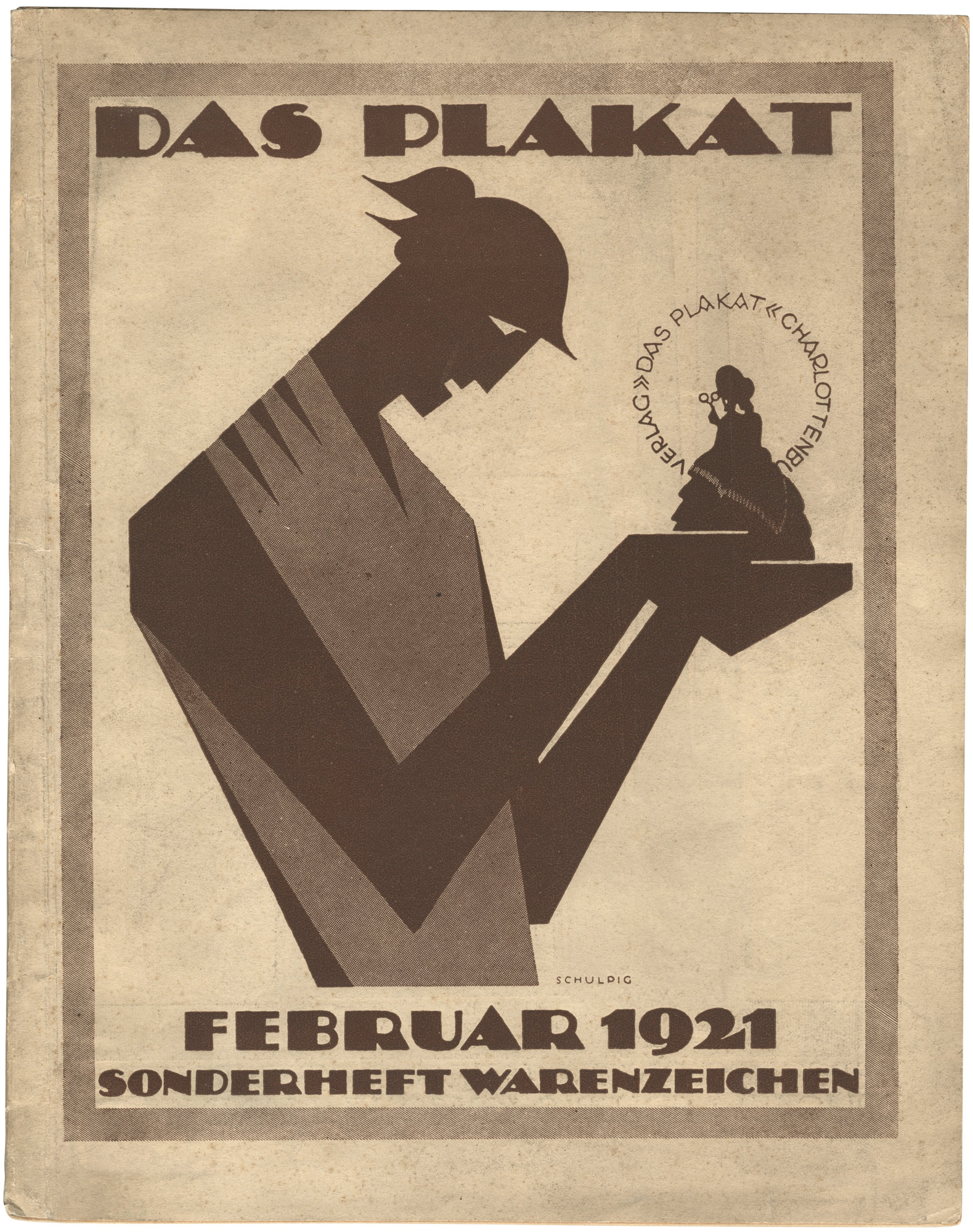 Galerie VergrößernVollbildanzeige beendenDas Plakat, Sonderheft Warenzeichen, Februar 1921Jahr: 1921Medium: Magazine coverMaße: 23 x 29 cmTechnik: LetterpressAuftraggeber: Verlag Das PlakatOrt: BerlinDesign: Karl Schulpig