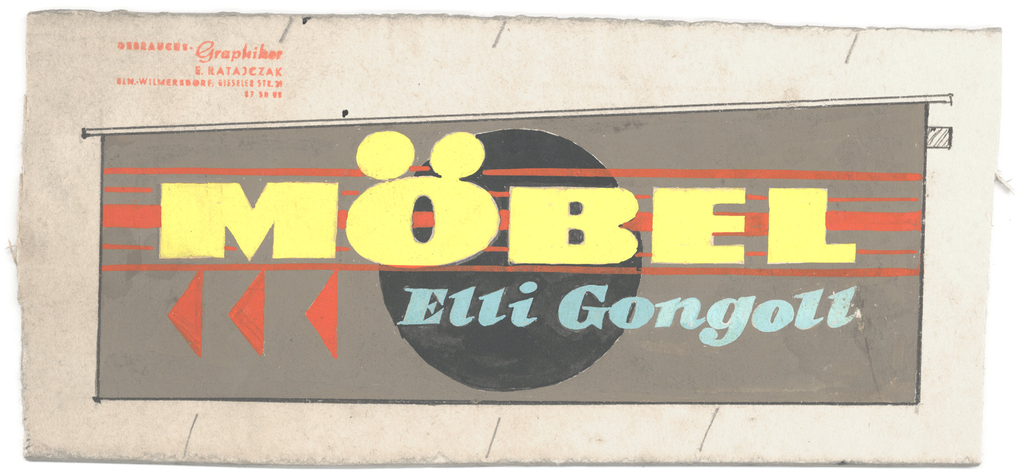 Galerie VergrößernVollbildanzeige beendenMöbel Elli GongollJahr: 1960Medium: Original ArtworkMaße: aprox. 27 x 13 cm (Series of 5)Auftraggeber: Möbel Elli GongollOrt: BerlinDesign: E. Ratajczak