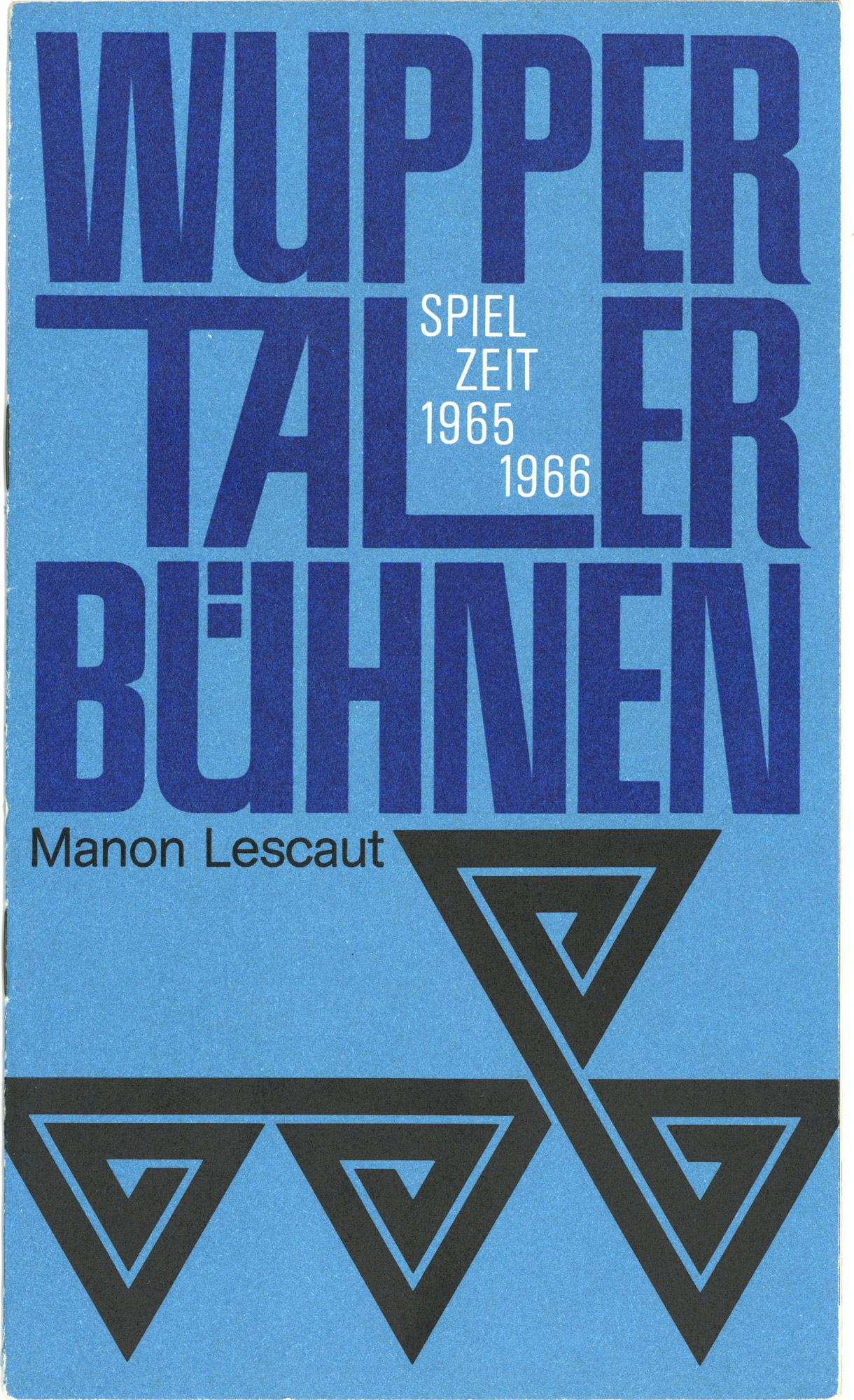 Galerie VergrößernVollbildanzeige beendenWuppertaler BühnenJahr: 1965Medium: Brochure coverMaße: 12,5 x 21 cmTechnik: OffsetAuftraggeber: Wuppertaler BühnenOrt: WuppertalDesign: Walter Breker
